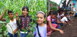 Otro elemento integrador entre los equipos y las comunidades, además del agua, fue la comida. Ambos elementos van de la mano y se juntaron en el Chantli, la vivienda campesina y su solar, su huerto. Trabajamos esos espacios en conjunto, buscando reforzar la autosuficiencia en agua limpia y alimentos sanos y variados, cuidar la leña y la salud con estufas ahorradoras, y animando determinantemente la participación de las mujeres. También el trabajo con las escuelas de todos los niveles (de preescolar a telebachilleratos) consolidó la visión integral y el enfoque común, ampliando considerablemente los efectos positivos en la conciencia y las prácticas de las familias, comités de madres y padres, personas docentes y directivas, y estudiantes de todas las edades. Particularmente relevante en este sentido fue el proyecto Jornadas por la Madre Tierra, con métodos pedagógicos lúdicos y actividades extraescolares, como obras de teatro, dibujos, murales, recorridos en campo con personas adultas, y otras. Todo ello contribuyó a restaurar relaciones intergeneracionales, el aprecio de niñas, niños y jóvenes hacia las y los Huehues, acrecentar su conciencia ambiental, expresar sus propios sueños de cómo les gustaría ver sus territorios y, de forma entrañable, propiciar el cariño por su terruño.